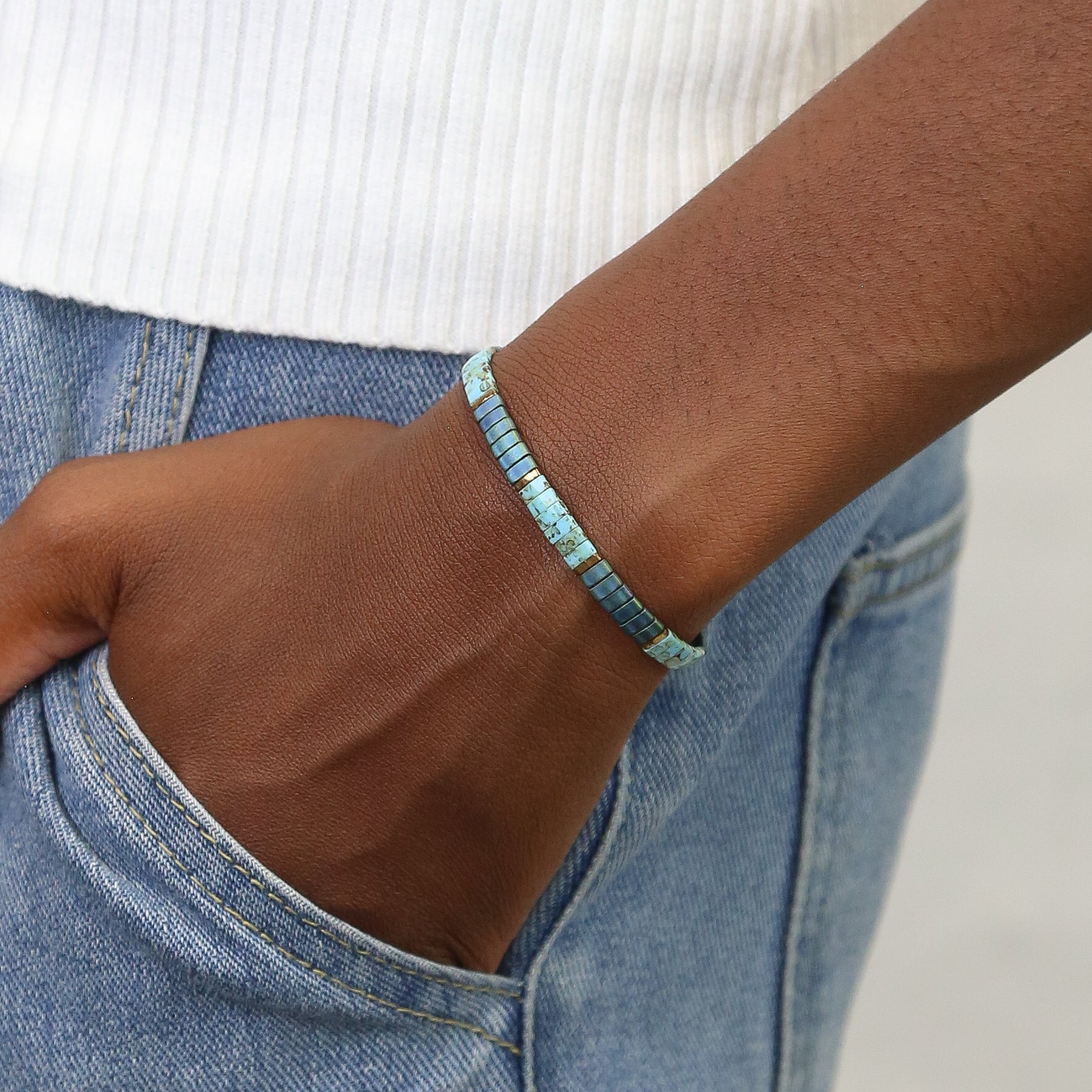 Tila Bracelets by Mack & Rex are NOT your typical beaded bracelets! We proudly back up our bracelets with a quality guarantee (yes, on stretchy bracelets!) and know that you will love them! They are made with an expensive crystal cord elastic, as well as glass tile beads from the top manufacture in Japan. In addition to being beautiful, our stretchy bead bracelets are:
