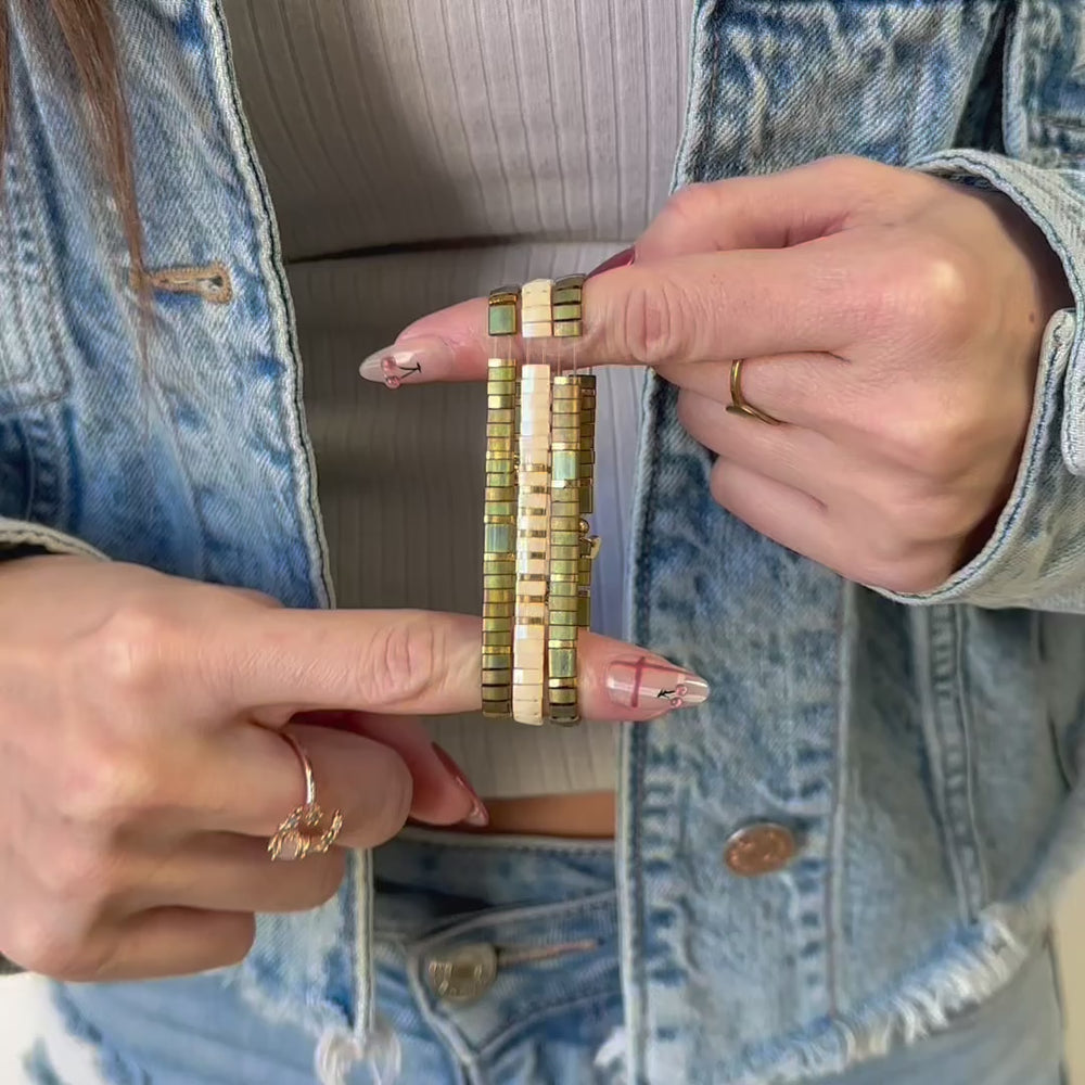 Tila Bracelets by Mack & Rex are NOT your typical beaded bracelets! We proudly back up our bracelets with a quality guarantee (yes, on stretchy bracelets!) and know that you will love them! They are made with an expensive crystal cord elastic, as well as glass tile beads from the top manufacture in Japan. In addition to being beautiful, our stretchy bead bracelets are: