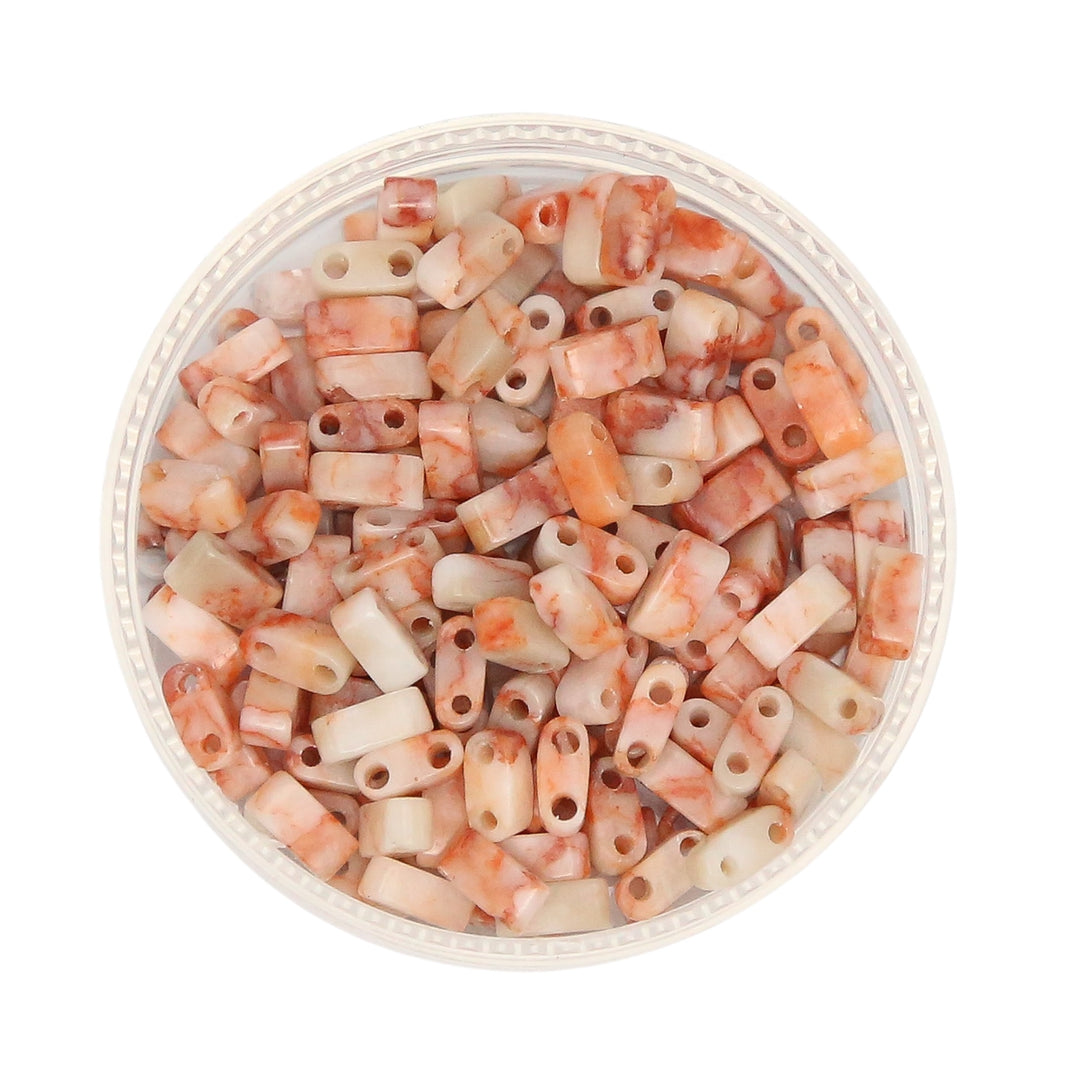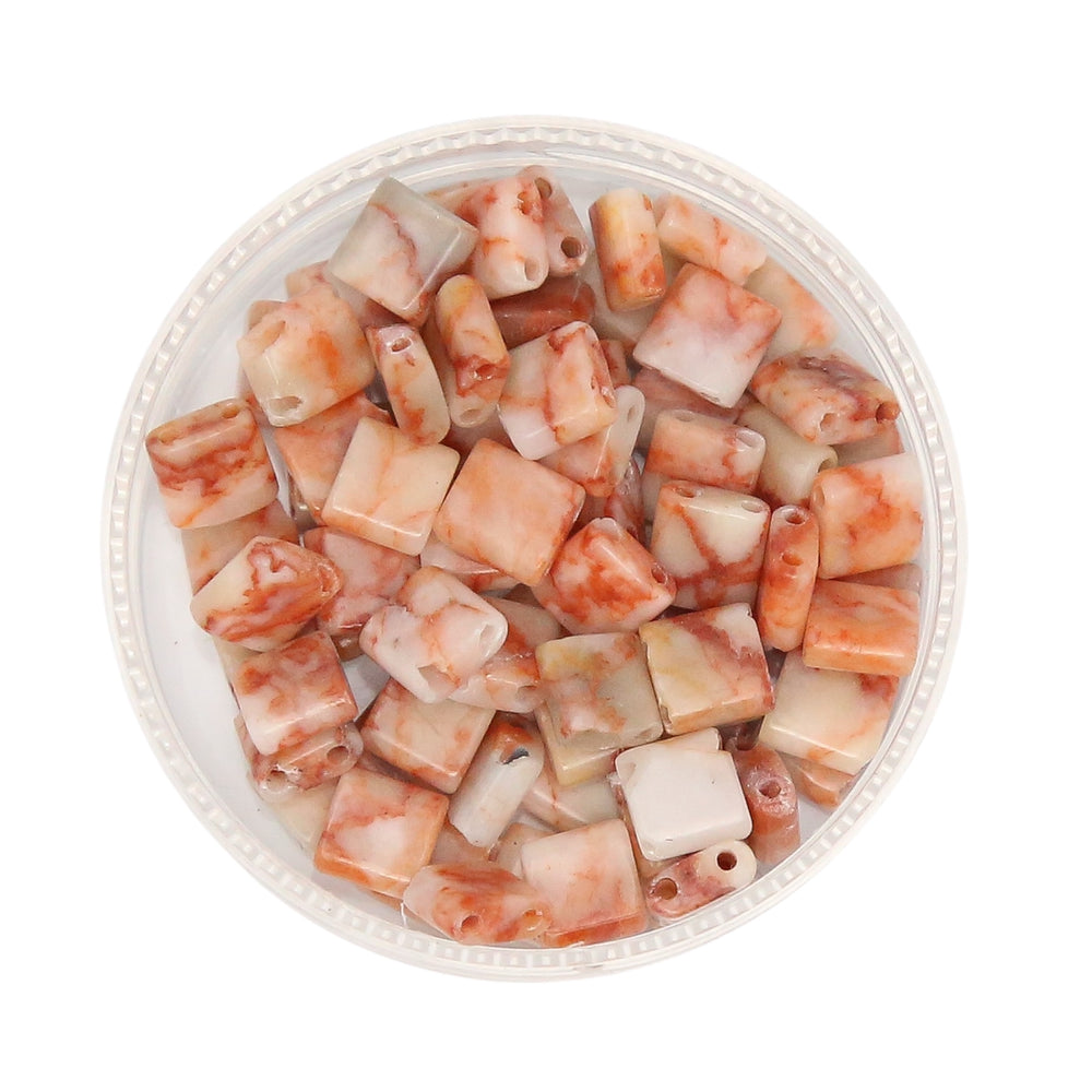 Our designer tile beads are not manufactured by Miyuki but have the exact same dimensions. Some are made from glass, and some are made from hematite.