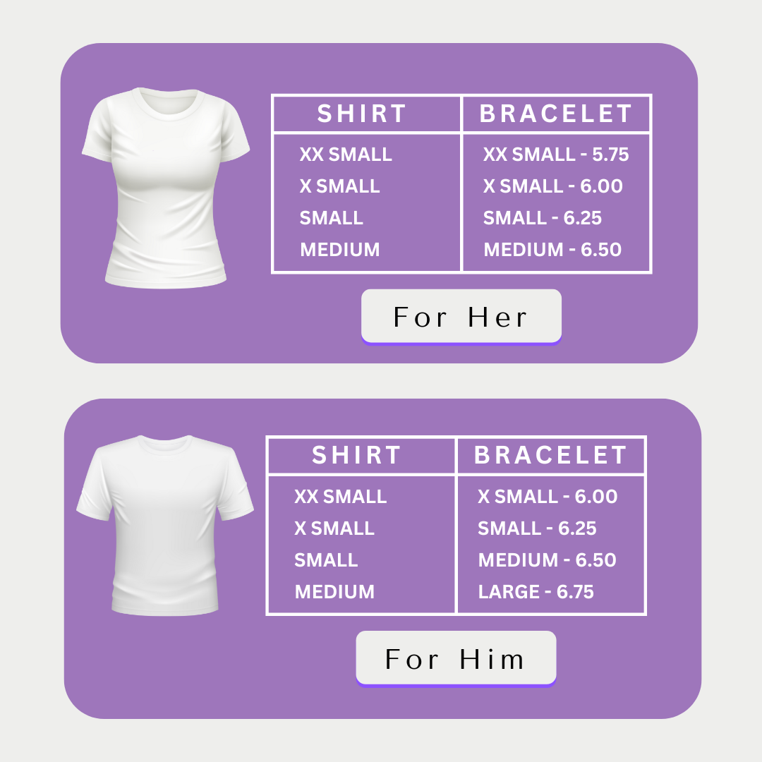 For instance, if you normally wear a size 2X large T-shirt, opt for a 3X large bracelet. This compensates for the differences in wrist size between men and women. A 3X large bracelet might also measure around 7.50 inches.